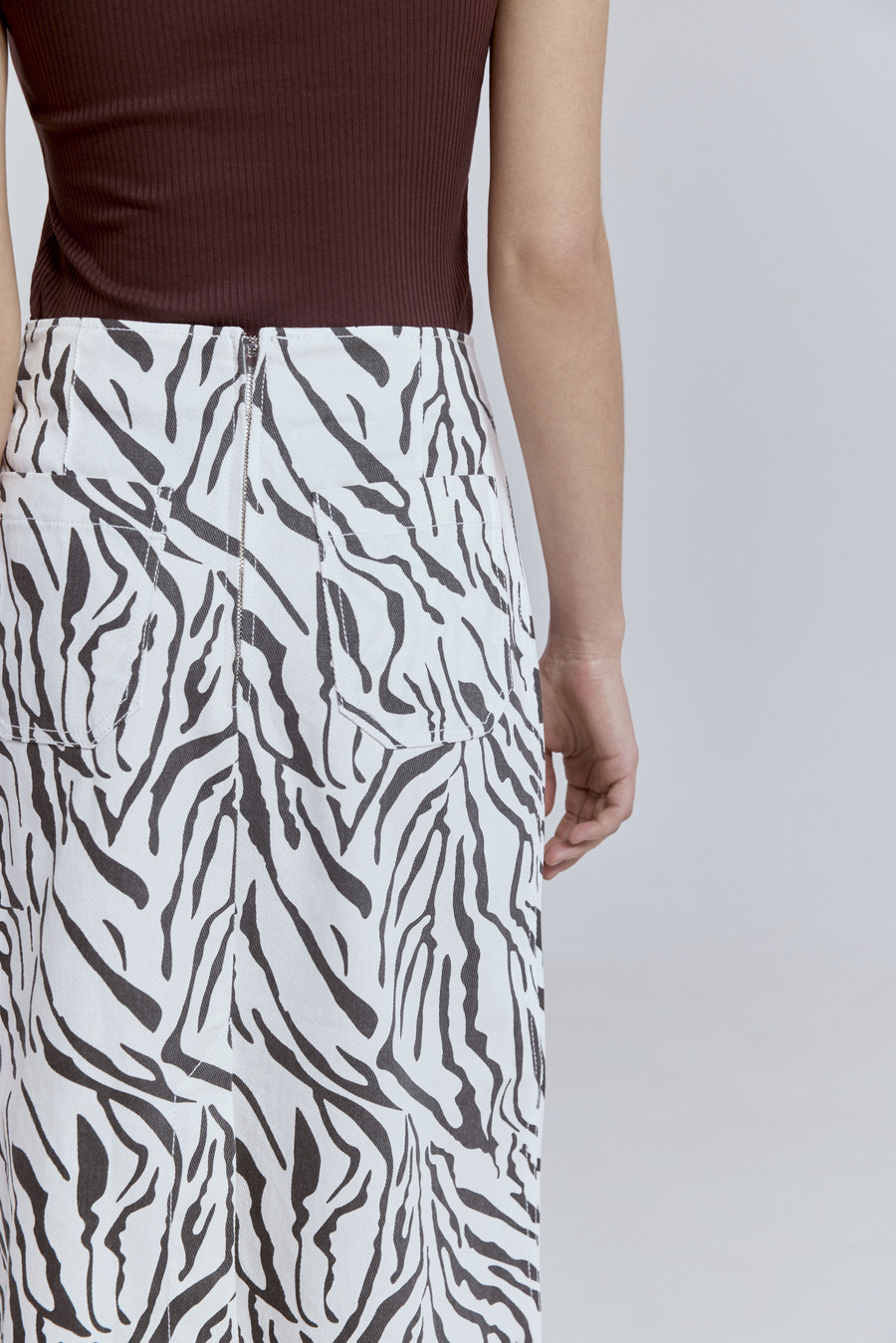 Юбка из легкого денима с анималистичным принтом «зебра»