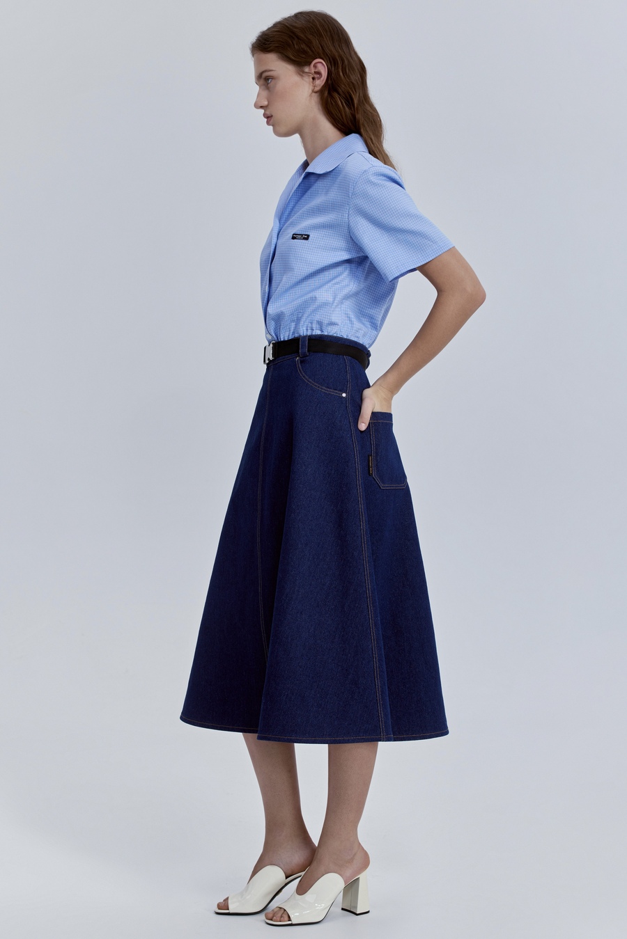 Юбка-колокол из денима — это современная интерпретация классики, в которой дерзость встречается с элегантностью. Плотный хлопковый деним держит архитектурную форму, создавая выразительный силуэт с акцентом на талию и мягкое, уверенное расширение к низу.