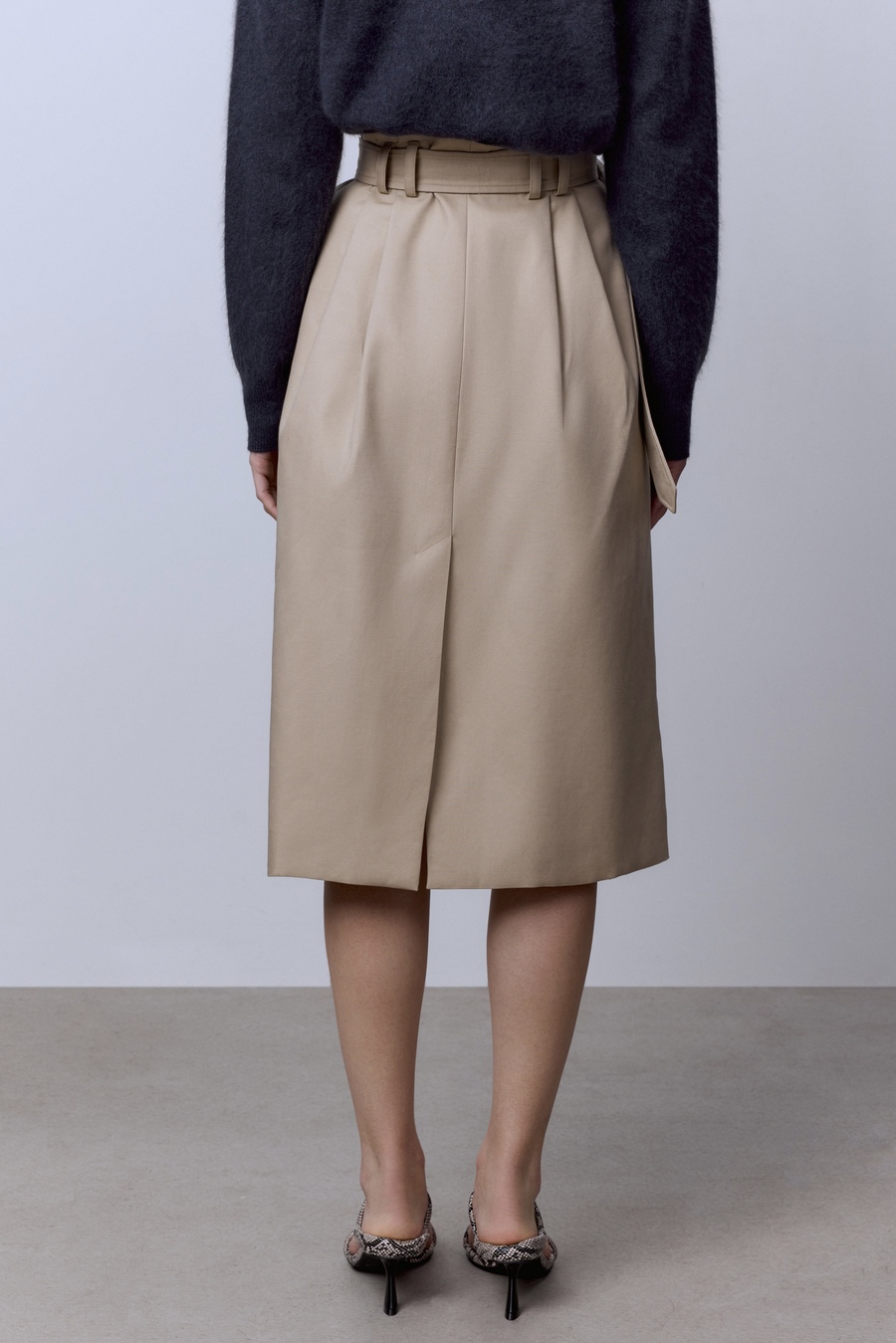Эта юбка легко вписывается в динамичный ритм города: с белой рубашкой она выглядит строго и минималистично, с мягким свитером — расслабленно и уютно.