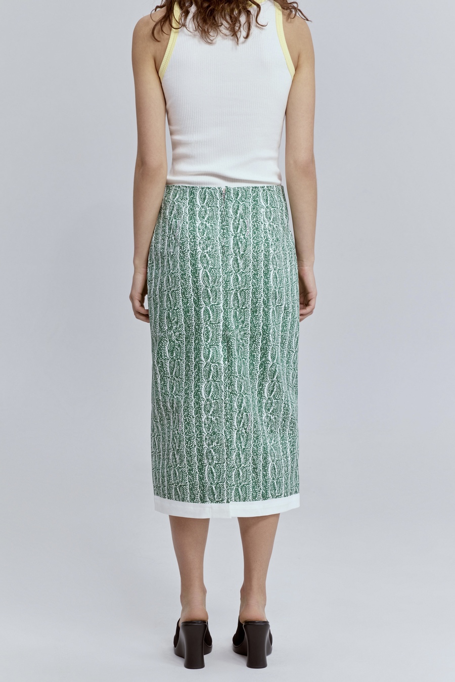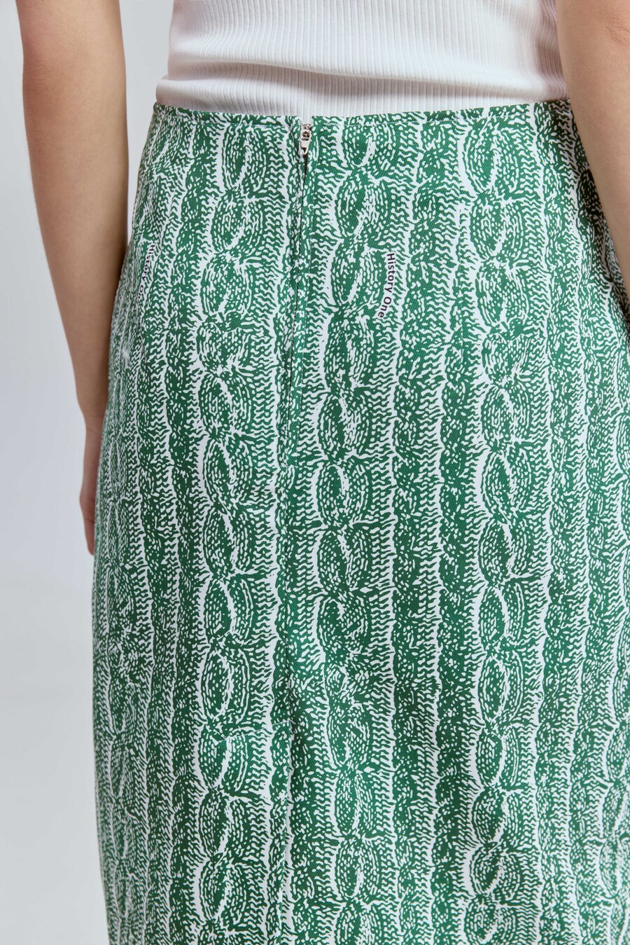 Юбка прямая из лёгкого денима с принтом «косы», зелёный