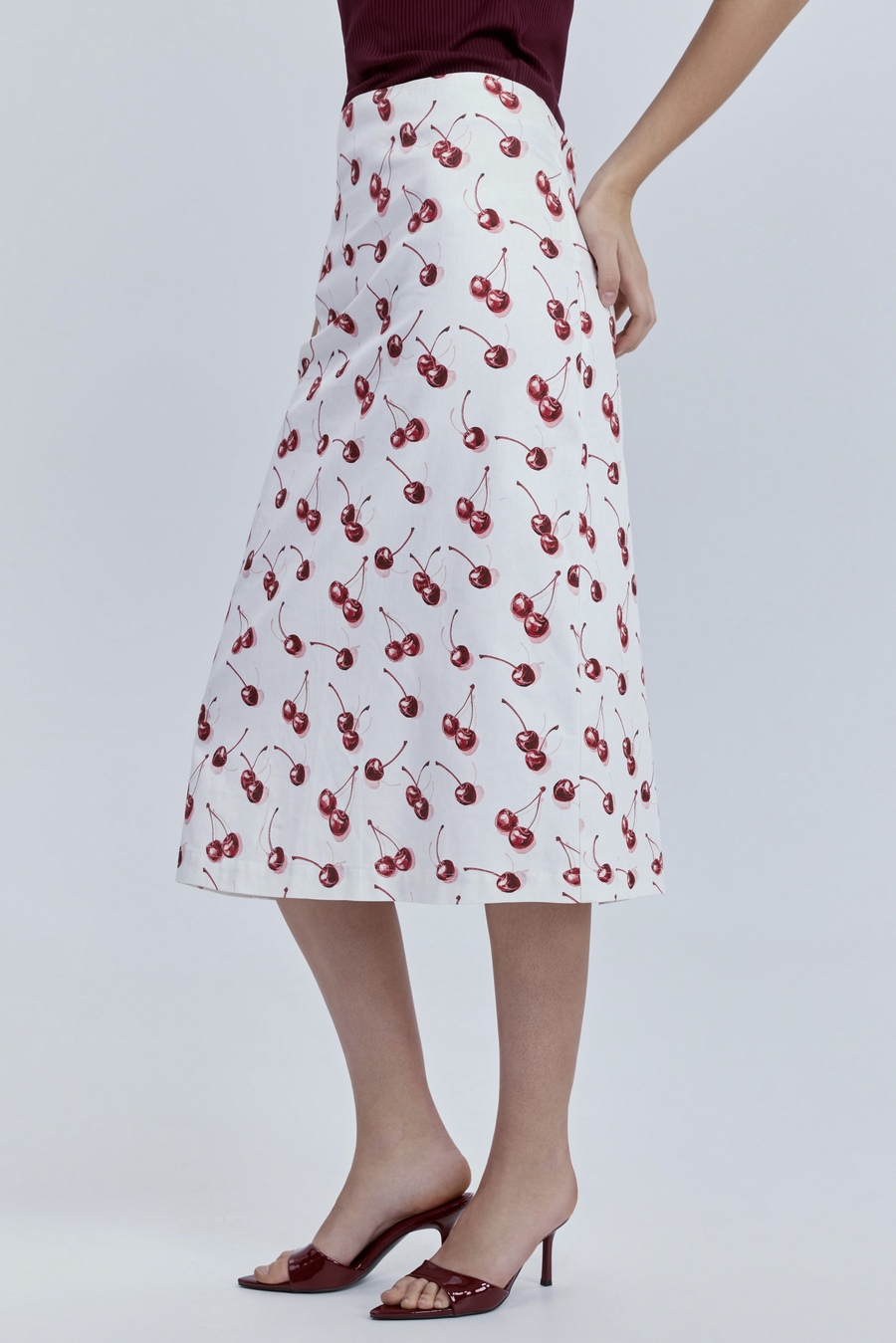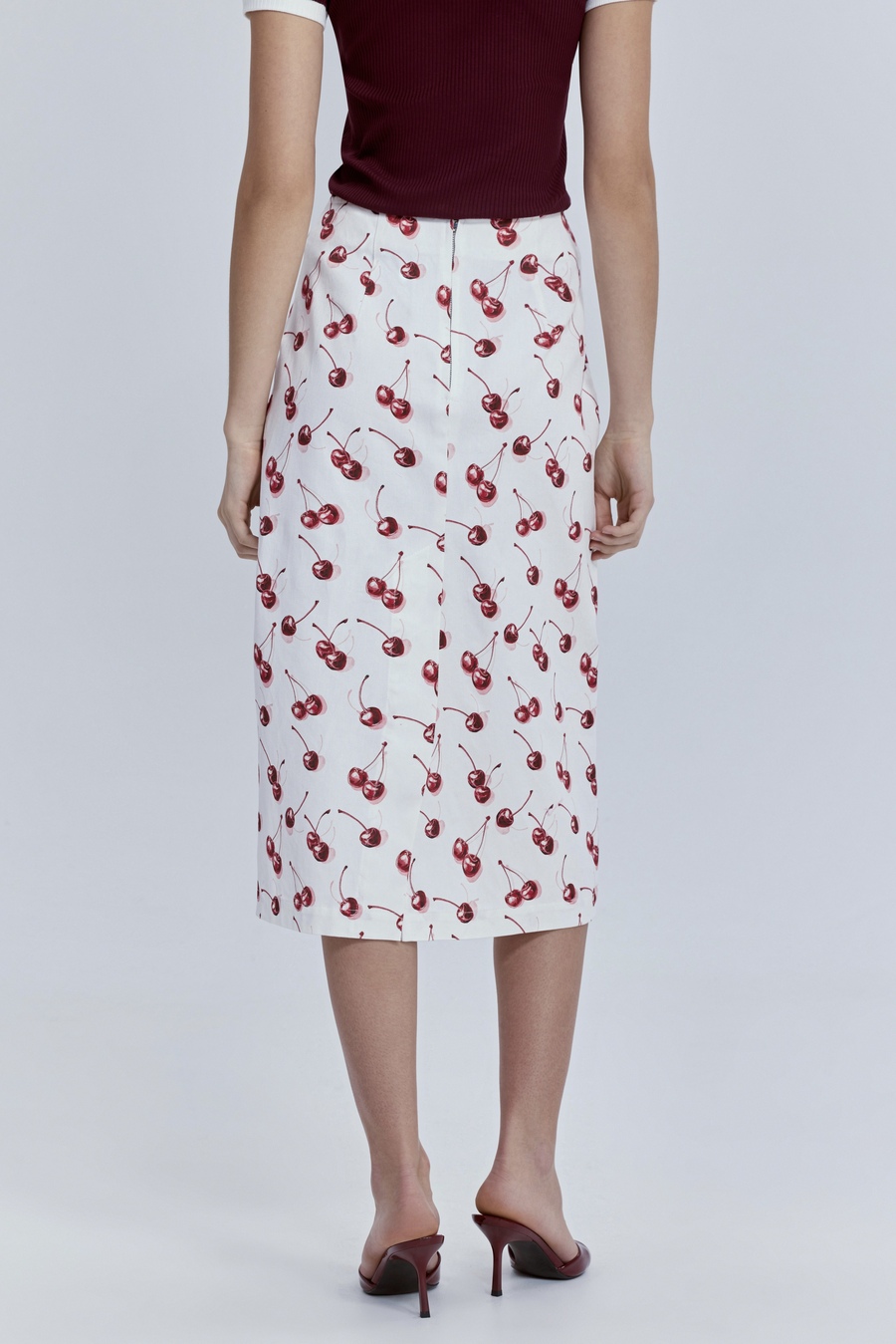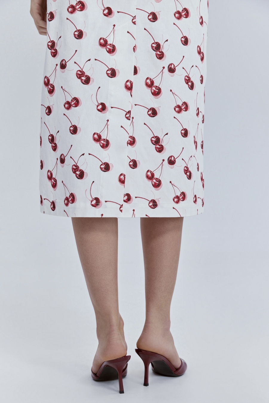 Юбка прямая из лёгкого денима с принтом «вишни», молочный