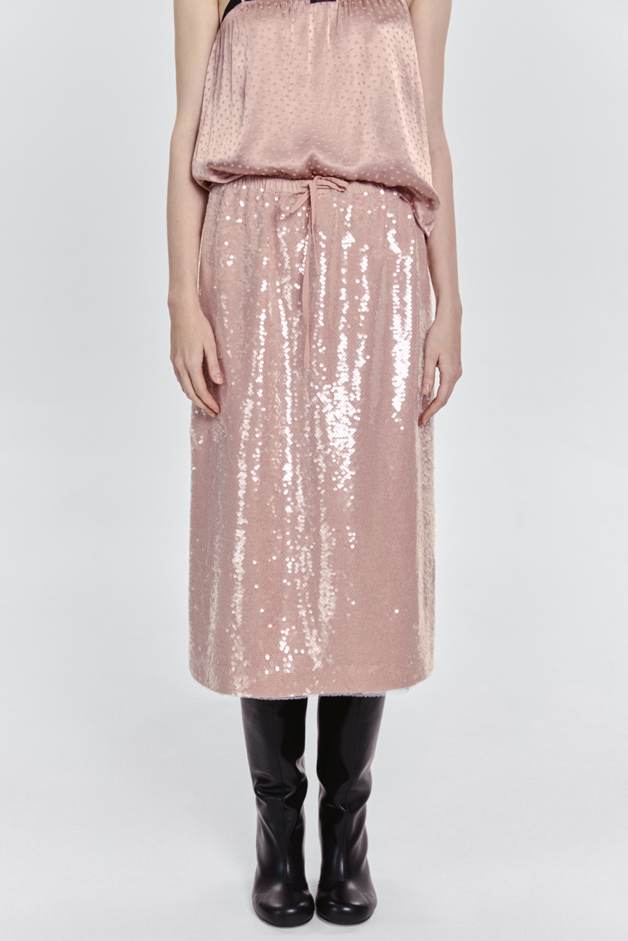 Юбка прямая с пайетками на шифоне, пудровый