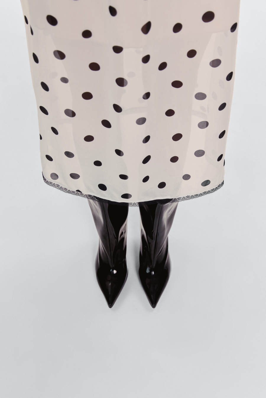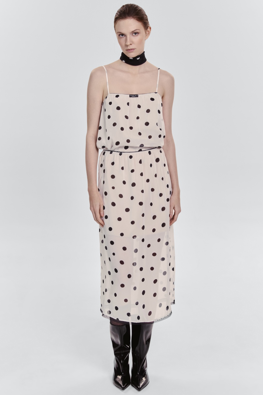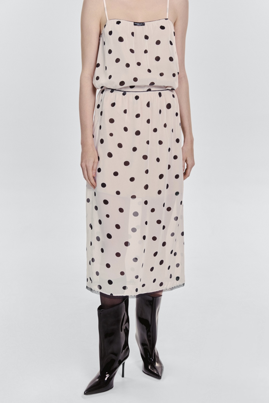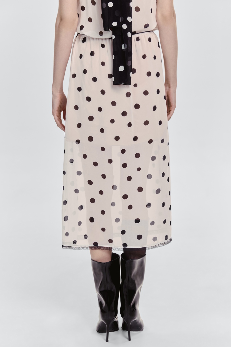 Юбка в горох из воздушного шифона — вещь, которая будто создана для тех, кто любит сочетать нежность и дерзость. Лёгкая, струящаяся, она красиво подхватывает движение и добавляет образу кинематографичности. Классический принт в горох звучит по-новому благодаря современному крою: юбка легко вписывается и в дневные луки с базовой майкой, и в вечерние — с топом или жакетом.